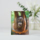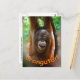 En ung manlig orangutan delar ett lycklig-leende under djungelskolan i regnskogen i Indonesien.