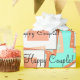 Lycklig Couple är skrivet i svart skript slumpmässigt över många lagrar på Bröllop Önskemål anteckning i fruktinspirerad cantaloupe, persika, honungsdagg och turkoblått färg med litet Kärlek och XO skrivet i vitt. Roligtens moderna bröllop-design för möhippa eller bröllopsgåva. Ursprunglig teckningsdesign av TamiraZDesign.
