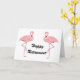 Rosa flamingos lycklig pension vill ha hälsningskort.