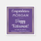 Lägg till en elegant vid pension party dekorationer med anpassningsbar lila och guld pappra blöjor. Alla formuleringar är enkla att anpassa. Utformningen har ett fyrkantigt faux foil gräns, ett modernt calligraphy-meddelande för skript och snyggt vintage typography-år med företag eller företag namn. Den kan anpassas för alla tillfälle eller innehålla ett favoritcitat eller ett roligt ordspråk. Observera att guld är tryckt på färg, inte metallfolie. Den minsta klassens utformning har en professionell som passar honom eller henne, en pensionerande medarbetare, anställd, vän eller familjemedlem. Grattisar och Lycklig Pension!