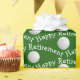 Budskapet från lycklig Pension om grönt med vit golf bollar. Bakgrund färg och meddelande kan redigeras.