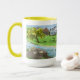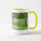 Önska en medarbetare, en familjemedlem eller en vän grattisar på pension med anpassadet lycklig pension mugg med en bild av dam som läser i en hammock på hennes framgård, och lyssnar på en brinnande brook.