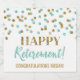 Lycklig pension anpassningsbar mousserande vin flaska-etikett med turkos och konetti från guld glitter mönster
