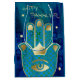 Lycklig Pessover/Shalom på Pesach. Elegant Festive Gold Foil design med Hamsa Hand Lucky Symbol och David Passover Gift Bags Star. Matchningskort och gåvor som finns tillgängliga i de judiska Helgdagarna / Pesach-kategorin i vår butik.