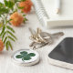 Underbaren tittar den lyckliga nyckelringen, med en rolig för lövpläd för grönt 4 shamrock, mot en vitbakgrund. Underbar lycklig berlock som gör en gullig lite gåva för.