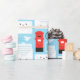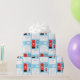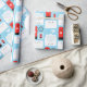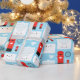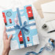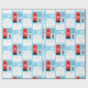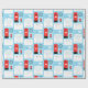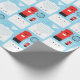 Repetitionmönster av kawaiiBritt-stil postboxes, brev, frimärken, kuvert, pappersflygplan och postar markerar på en blåttbakgrund.