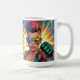 Pop art tecknad bok stil kvinna med underskuren ge en övre kapsel slår regnbåge lgqia+ solglasögon kaffe kopp.