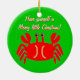 Ge lite ett juljubel denna julhelg med vår lyckliga krabbajulprydnad. Röd krabba för lycklig en lite med hälsningen, "har dig glad lite jul" i vitbokstäver med röda viktig bak texten. Bakgrunden är en ljus julgrönt. En rolig prydnad som ska visas eller ges som en gåva. Frigör för att skräddarsy any långt dig något liknande.