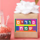 Rektangulärt klistermärke i lycklig Purim Hebrew.