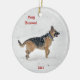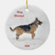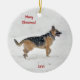 Lycklig Rädding German Shepherd Hund in Winter Snö Julgransprydnad Keramik