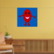 En tecknad av en jämn röd druva med glansigt svart öga och en rosa mun mot blå bakgrund med armen öppen. Det här är en livfull, färglös poster som borde få ansikte att le.