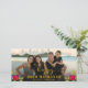 Elegant värdefull judisk nyårstext för kalligrafi av typografi i Lycklig Rosh Hashanah som läggs på bilden. Skriptteckensnitt i lyxet guld brev. Dekorerad med röd granatfrukt. Du kan enkelt ändra exempelfotot med ditt eget bild för att anpassa produkten och skicka ditt nyår hälsning Rosh Hashanah till din familj och dina vänner.