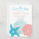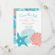Bröllop spara datum-kortet innehåller sand-dollar, stjärnfisk (havstjärna) och slingor i tropiska koraller och akvblått. Omvänd sida är en nautisk snäcka, val svan och snurrar mönster på turkobakgrunden. Perfekt för strand-, nautiska-, kust-, sommar-, havs- och öområde bröllop. Originalteckningen KL Lagrar.