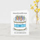 En enkel illustration av en vit födelsedagskalas täckt av tända ljus och med en blå buk bunden runt den. Ord "Lycklig delade födelsedag till en mycket speciell morbror" följer med bilden.