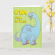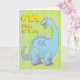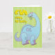 Storblå dinosaurier som äter en löv, med en födelsedag hälsning på gröntens bakgrund.