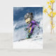 En söt skidåkare säger hej till dig och inbjudningskort dig till språngbrädan