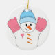 Lycklig Snögubbe i Rosa Mittens Julgransprydnad Keramik