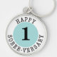 Lycklig sober-årskort rund silverfärgad nyckelring