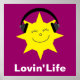 Rosa poster med leende sol med hörlurar och ord "Lovin’ Life" Text & bakgrundsbild färg är anpassade genom att klicka på knappen "Anpassa det" - många färger och typsnitt att välja bland. Välj storlek för din poster. Finns även på arbetsytan. Besök min Sober Princess-butik för unika gåvor och roligtar till människor som vill hämta sig från alkohol och narkotikamissbruk - och presenter med andlig/inspirationsljud. Alla illustrationer som skapas av en alkoholhaltig vid återvinning.