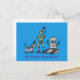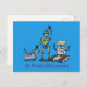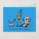Lycklig söta robotar trio tecknad på blå bakgrund vykort