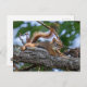 En bild av en leende röd ekorre som sträcks ut längs en träd armar.