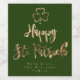 Lycklig St. Patrick Shamrock Klöver Elegant Grönt Faux Gold Foil Text och 3 Löv Klöver på Chic Grönt Background, Modern Script, Lycklig St. Patrick's Day Vin Flaska Label