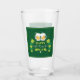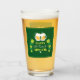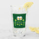 Dricksglas med festive Lycklig St. Patrick's Day-design med 2 mugg frostiskt öl och lite klöver på gröntens bakgrund.