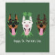 Cute illustration av Dobermann hundar, klädd i St. Patrick's Day attire. Perfekt för föräldrar och djurälskare till sällskapsdjur!