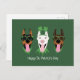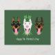 Cute illustration av Dobermann hundar, klädd i St. Patrick's Day attire. Perfekt för föräldrar och djurälskare till sällskapsdjur!