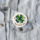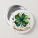 Visning ditt irländska pride med den här roligt St patrick's day-knappen som visar en vattenfärgssymbol för klöver i fyra löv med texten "Lycklig St. Patrick's Day" i ett kursivt brev från stil.