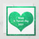 St patrick's day-kort designat med glittery grönt hjärta i bakgrunden!