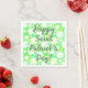 Den här söt schamprock mönster papper napkin-designen är perfekt för din St patty's day party. Klövern 4-löv är vit med stänk av gult och blå på gröntens bakgrund med ett färgat - något färgat - utseende. Den kursiva orden "Lycklig Saint patrick's day!" är en mörkare grönt. Fira i stil med de lyckliga Saint patrick's day party-servetterna.