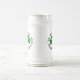 En vit öl mugg med grönt schamprock klöver och svart "LYCKLIG ST". PATRICK'S DAY's text runt den.