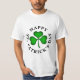 Ett T-Shirt med grönt Shrock klöver och ett svart "LYCKLIG ST. PATRICK'S DAY's text runt den.
