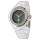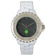 Du kan njuta av St. Patrick's Day med min teckning som jag kallar, "Lycklig St. Patrick's Day", av en fyrklöver som lagts till på den här kvinnans rhinestone vita enamel-klocka.