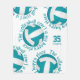 Den här söta volleybollfilten har fem slumpmässigt arrangerade teal- och vita volleybollar med texten "Volleyball court är min lycklig ställe" i grått som omringar varje volleyboll i ett typsnitt av coola, allt på vit bakgrund - hennes namn och jersey är anpassade - av katz_d_zynes