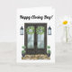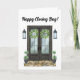 De här vikta Lycklig-stängningsdagskorten har en söt utformning av ytterdörren. Ett textområde finns för ditt företag i gods namn och kontakta informationen med gott om utrymme för ditt personliga meddelande till klienten.