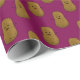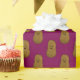 Lustigt pappert med mat. Ett mönster av en söt lycklig-tecknad brun potatis med ett stort leende på hans ansikte mot bakgrund färg av vin rött.