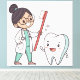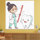 Ta ett rum med den här vänliga tecknaden som illustrerar en kvinnlig tandläkare och en leende tandfigur. Den trevliga utformningen främjar tandvård i ett lekfullt stil, perfekt för barnkontor, klassrum eller barnrum.