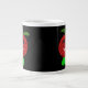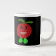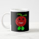 Fantastisk mugg har en söt tecknad av en leende tomat med svart öga, rosa mun och söta små gröntar.