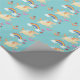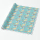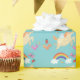 Svälla pappert med ett barnliknande tema. Designad på blå grönt. En lycklig-enhörning frolicks under en färglös regnbåge med fluffa moln. Blommor, fjärilar och jordgubbar ger en charmerande beröring till utformningen. Det skulle vara en söt verkligen för en babydusch eller för ett barns födelsedag.