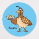 Den här utformningen har en vaktel i lycklig med ägg på en skylt. Ritad i roligt tecknad stil.