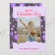 Sprid kärlek denna Alla hjärtans dag med ett romantiskt kort som lätt kan anpassas efter ditt namn, foto och meddelande för att göra det verkligt unikt! Den har en viskartad hjärt- och blominspirerad utformning i pulserande lila-nyanser på en chic mörk grått-bakgrund. Detta gigantiska och lekfulla mönster omfattar hjärtformer, ömtålig blommigt inslag, halvhjärtade accenter och karddockor, skapar det perfekten Valentinkort till dina vänner, familj och kära. Visa dem hur mycket du bryr dig om det här genomtänkt designade kortet, inklusive roligt mönster, eget namn, foto och söta molnformer - ett perfekt sätt att göra extra speciellt!