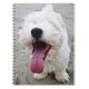 Lycklig valpvithund som är malteese, maltipoo. anteckningsbok
