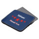 Laptop sleeve har ord om veteraner, tack till veteraner med blå bakgrund och röda stjärnor mellan ord, passande att fira veterandagen.