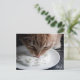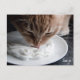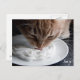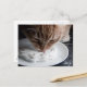 Vykort med foto på en katt som slickar kräm. Ord går med oss i ett hörn. Anpassade.