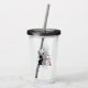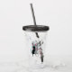 Den här akryldrycken torkar med halm och lock har en lycklig vit mor-katt sitta med sina tre söta kattungar som alla bär rosa bågar runt nacke och är svarta, vita och grått.