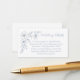 Dessa eleganta bröllopsföljekort har en illustration med pudrig blå blomster i hörnet, i kombination med klassisk serif- och scripttypografi på en krispig vit bakgrund, vilket skapar ett förfinat sätt att dela riktningar, boende eller extra information med era gäster.