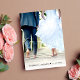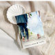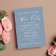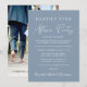 Chic dammblå elopement eller liten bröllopsinbjudan och bröllopsfirande eller festinbjudan. Framsidan har "Lyckliga Bröllopsfest" i en mix av enkel vit typografi och ett modernt vitt skrivstil, och du kan anpassa ditt meddelande och din inbjudan i mer detalj och lägga till dina namn i en signaturliknande skrift. Baksidan har ditt favoritbröllopsfoto, dina förnamn och bröllopsdatum.