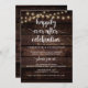 Vacker modern rustic mörkt trä, strängljus lantgård tema, Bröllop Elopement Annonsering, Inbjudningskort (Lyckliga för alltid firande). Detta är perfekt för din bröllopsmottagning och efterbröllopsfirande. Lägg till dina detaljer i matchande teckensnitt / bokstäver.
